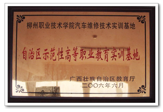 学院拥有全区最大、设备最先进的实训基地,建筑面积达13000多平米,教学仪器设备总值达到600余万元。共有理实一体的实训室/车间40个。是中央财政支持的国家技能型紧缺人才培养基地、国家高等职业学校汽车专业骨干教师培训基地、国家级、自治区级示范性实训基地、自治区中高职专业领军人物及双师型教师培训基地和柳州市职业教育千万元设备值生产性实训基地。