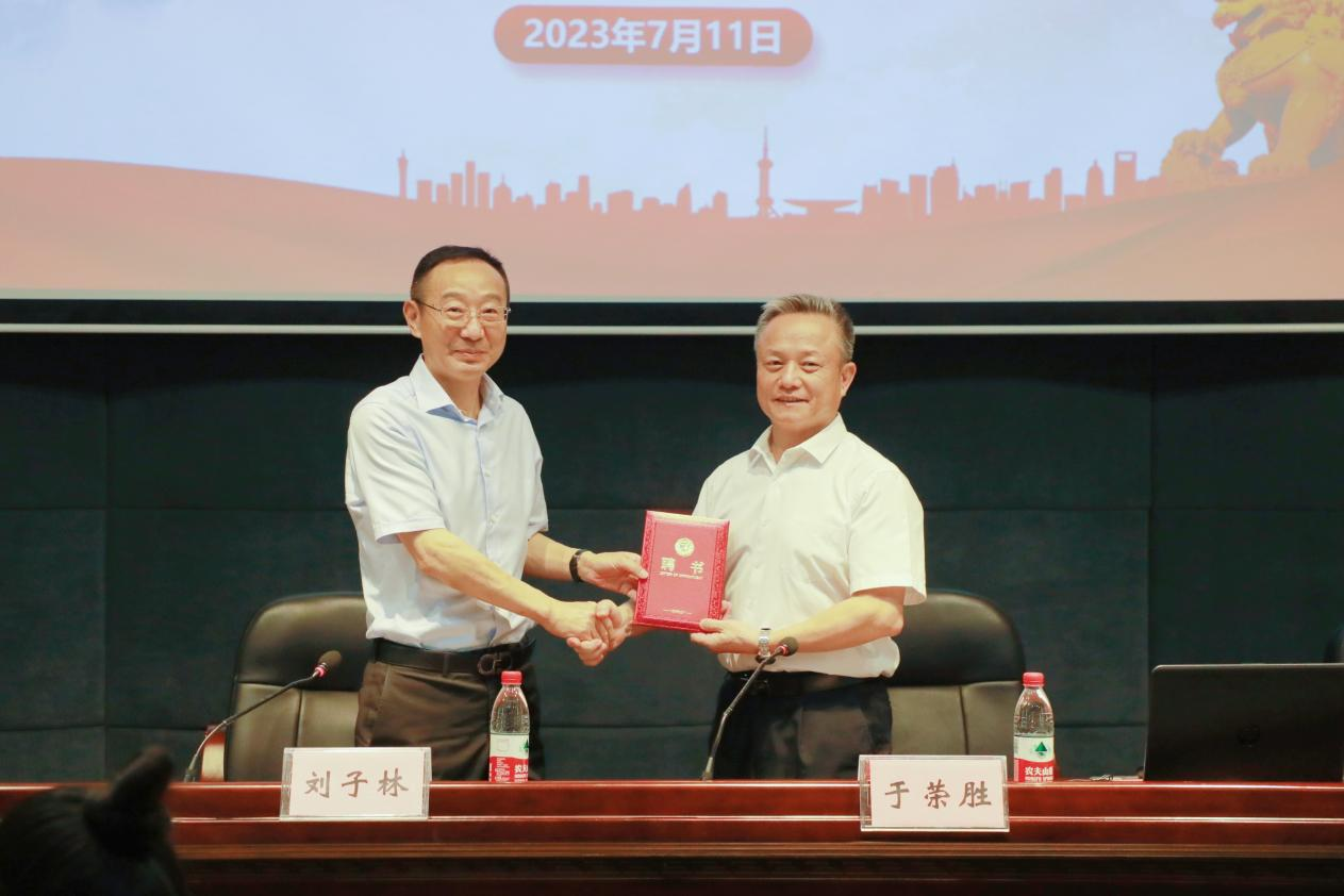 刘子林为于荣胜颁发了法治副校长聘书。于荣胜以《崇德明法、守正创新,共建新时代法治校园》为题作法治教育专题讲座。他从事检察工作25年,办理了大量疑难复杂案件,基于丰富的司法实务经验以及很高的法学理论造诣,分析了在新时代背景下如何依法治校和加强教师队伍法治建设,结合检察机关的办案实践,以案释法介绍关于惩治酒后驾车、预防职务犯罪方面的内容,让全场干部们受益匪浅。