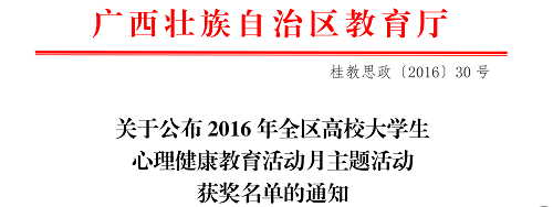 喜讯:我校在2016年全区高校大学心理健康教育活动月主题活动中获奖