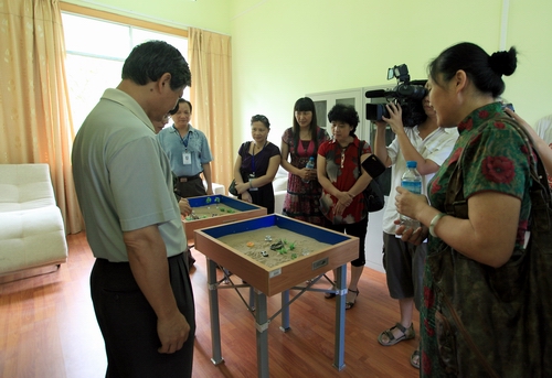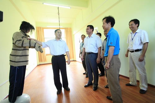 市总工会、柳州市教育工会及柳州市各高校工会领导在学院领导陪同下参观体验宣泄室