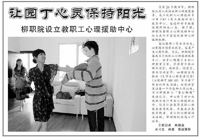 2010年9月11日,《柳州日报》、《南国今报》报道我院成立教职工心理援助中心的新闻。