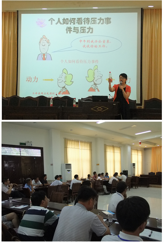 培训从9月上旬至中旬,共举办了四期,每期两天。针对集团管理人员存在凝聚力差、缺乏职业归属感、不善沟通等心理问题,课程内容分为压力管理、沟通管理、员工激励三个训练模块。此次培训是将心理学的理念和方法应用到企业的管理和训练活动中,采用现场案例分析、情境体验、角色扮演、个案咨询辅导、经验分享的形式,穿插管理游戏营造开放式课堂,通过心理教师的疏导和训练,解决管理干部的动机、心态、潜能、心理素质等一系列心理问题、消除困惑,实现个人成长与企业发展的和谐、统一。