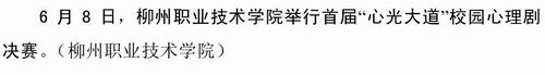 《广西教育信息》2011年第84期发布我院举行首届“心光大道”校园心理剧决赛的信息 来源:柳州职业技术学院新闻网 发布时间:2011-11-07 00:00:00 浏览次数: 次 【字体:小 大】 《广西教育信息》2011年第84期发布我院举行首届“心光大道”校园心理剧决赛的信息。(朱汝群) 《广西教育信息》发布我院信息的截图 分享到: 【打印正文】