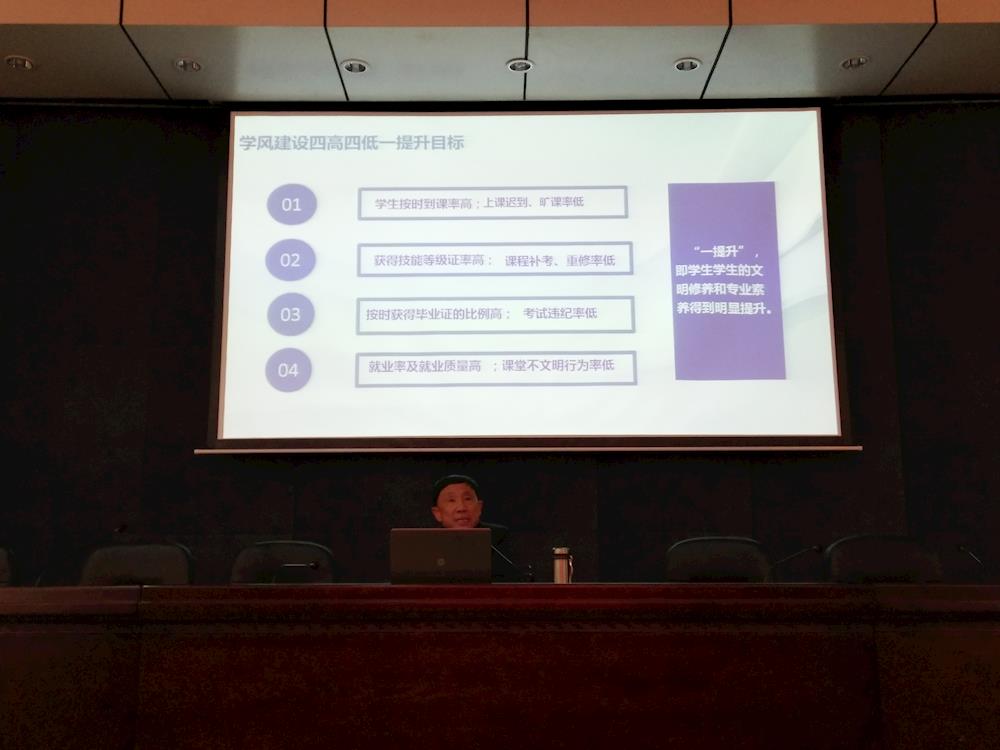 学生工作处安掌明对学校即将出台的一项重要政策《学风建设指导意见》,分别从学风建设指导思想、学风建设目标、学风建设的重要性紧迫性、学风建设的主要措施、学风建设的保障机制、学风建设的考核评价六个方面进行详细解读。安处长的报告,即使大家意识到学风建设的重要性和紧迫性,同时更意识到辅导员在学风建设的重要作用和责任。