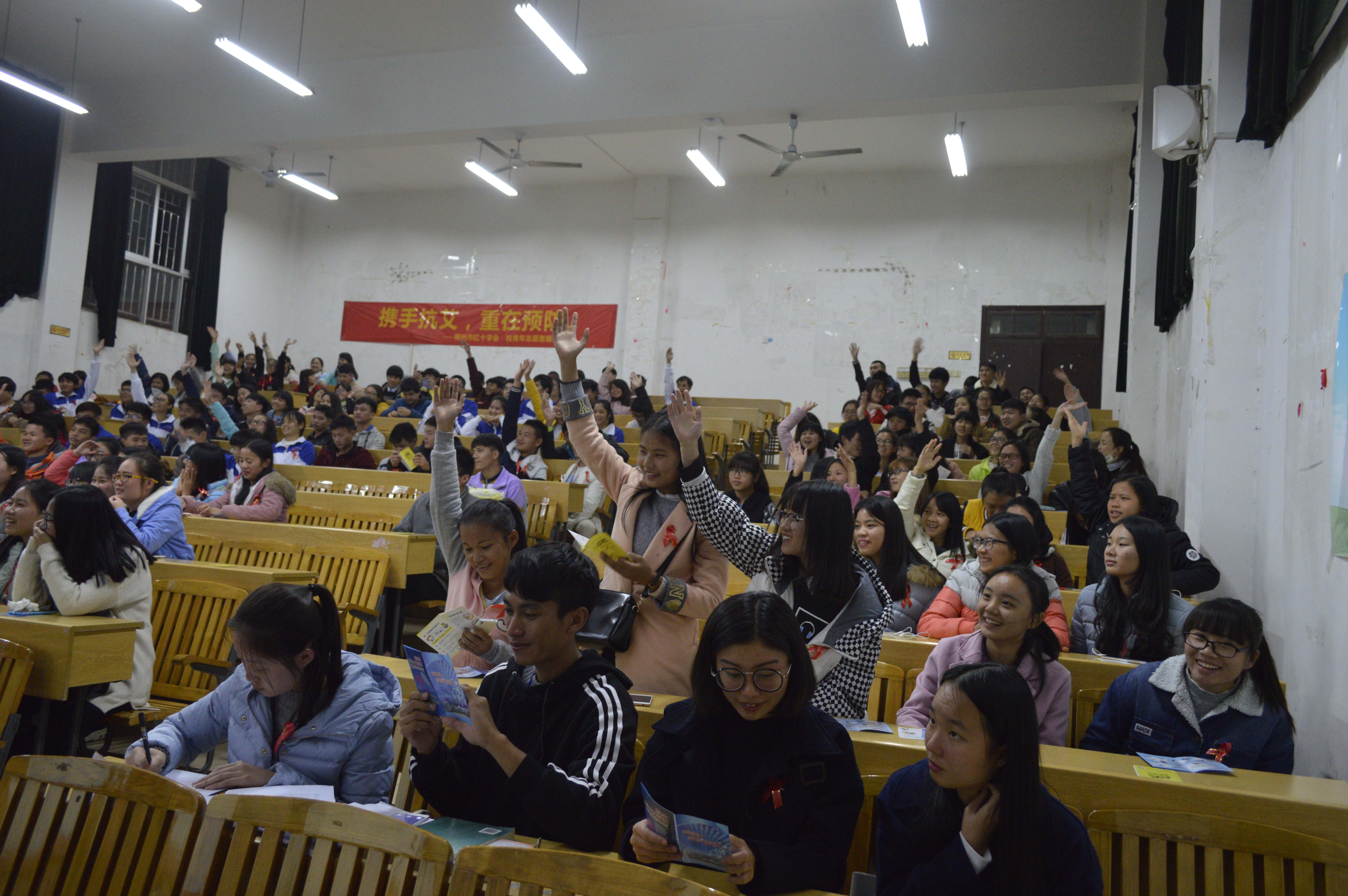 讲座上,冯献湘老师结合真实案例和大量数据,阐述了近几年来艾滋病感染由易感人群逐步扩散到了普通人群的事实。近30年,学生成了艾滋病的重灾区。经最新调查表明,高校是最容易发生艾滋病感染地?;怪氐闱康髁烁咝S忧慷源笱啻浩诘男越逃?,树立正确的性取向,介绍了个人如何预防艾滋病以及艾滋病的防治策略,把艾滋病防治的知识传递到每一名同学,教育学生珍爱生命,远离艾滋。此外,讲座还特别设置了有奖知识抢答环节,各位同学积极参与抢答,宣讲会达到了高潮。