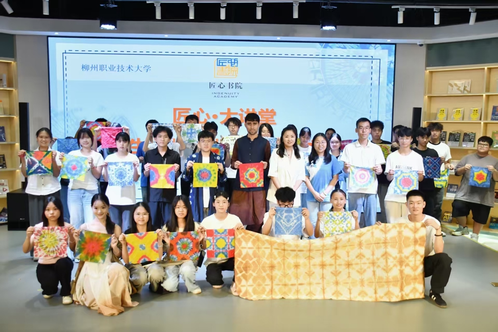 新闻网消息(文/艺术学院 韦益良 马云 图/匠心书院 黎宏桦 周妍如)2025年6月27日下午,由党委学生工作部、学生工作处、匠心书院主办,艺术学院承办的2025年第13期博雅·素质大讲堂之“布上生花,非遗扎染体验”在匠心书院匠心大厅内精彩上演。本次活动由艺术学院服装与服饰设计专业团队负责人马云老师主讲,吸引了50余名官塘校区在校生热情参与,其中包括来自国际交流处的外籍留学生,共同体验了非遗扎染技艺的独特魅力。