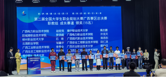 据了解,第二届全国大学生职业规划大赛广西区赛由自治区教育厅主办,以“筑梦青春志在四方,规划启航指引未来”为主题,旨在实现以赛促学,引导大学生树立正确的成才观、就业观和择业观。大赛吸引全区85所高校53万余名学生报名参赛。通过层层选拔,职教组成长赛道共有25名选手晋级全区总决赛,最终评选出金奖10项、银奖15项。