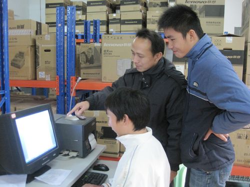 周柳军老师(中)指导学生进行仓储管理系统操作