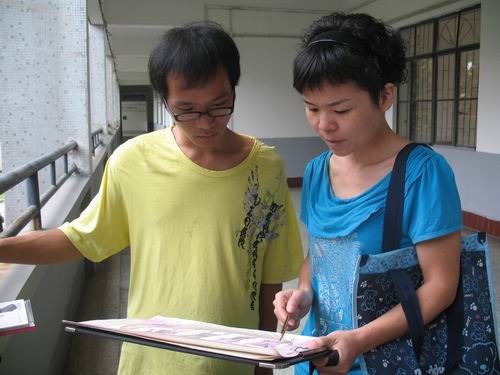 谭宇斌老师(右)给参加服装设计大赛的学生做指导