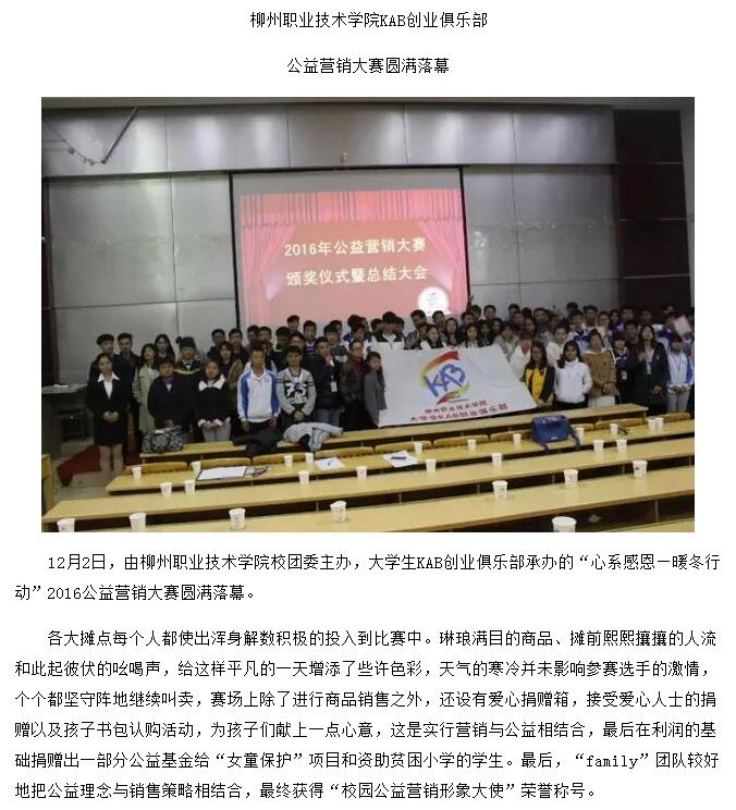 【中青在线】柳州职业技术学院KAB创业俱乐部公益营销大赛圆满落幕