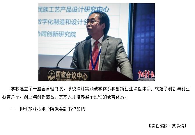 【中青在线】柳职院领导在国际创新创业博览会及“2016高职院校创新创业示范校”活动发言