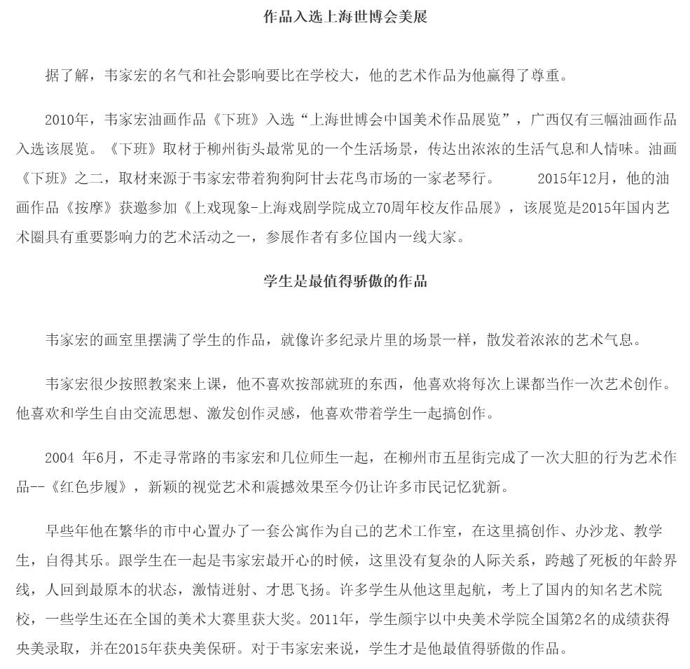 2016年1月11日,广西八桂职教网在教学科研-名师风采栏目,刊发我校艺术设计学院好老师、画家韦家宏的人物专访。(截图:石玉丹)详情点击:http://www.ep12.com/a/schoolstyle/eg/2017/0111/44527.html