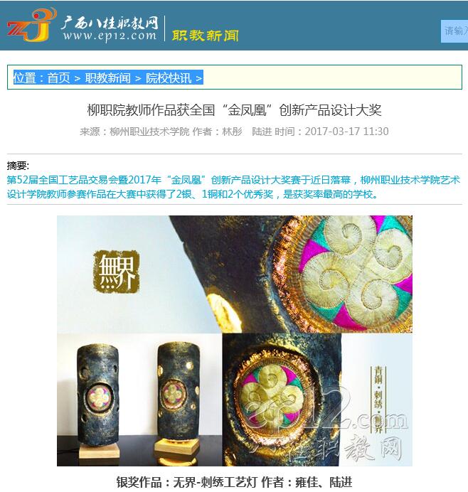 【广西八桂职教网】柳职院教师作品获全国“金凤凰”创新产品设计大奖