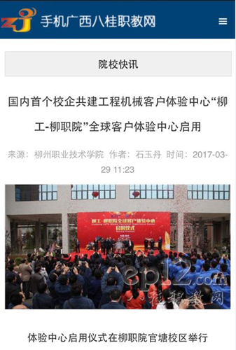 【手机广西八桂职教网】国内首个校企共建工程机械客户体验中心“柳工-柳职院”全球客户体验中心启用