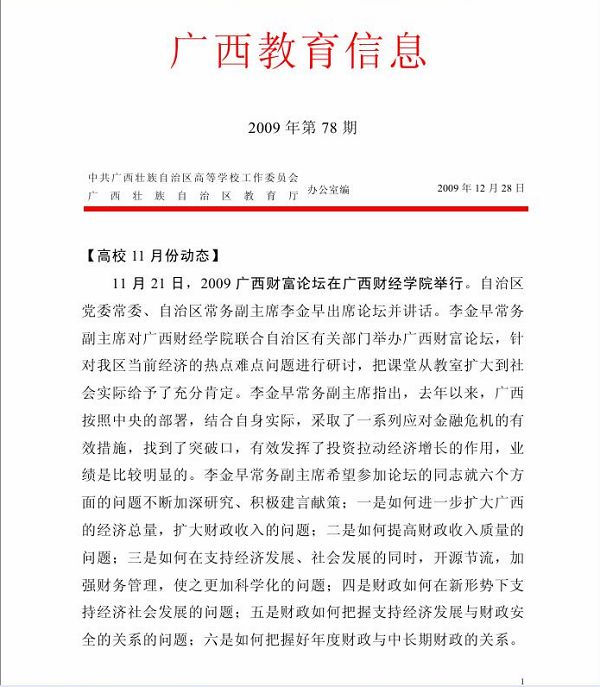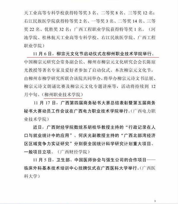 2009年12月28日,《广西教育信息》2009年第78期发布柳宗元文化艺术节启动仪式在我院举行的信息。(图/蒋玉梅)