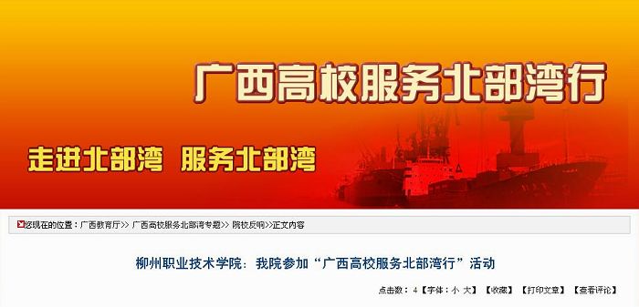 区教育厅公众信息网广西高校服务北部湾行专题网站发布我院参加“服务广西高校服务北部湾行”信息