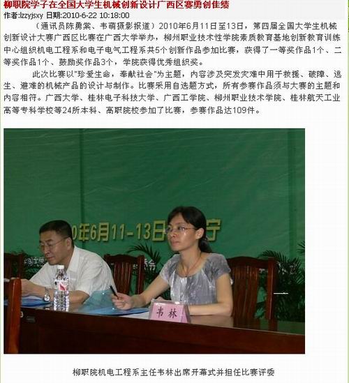 柳州教育网发布我院学子在全国大学生机械创新设计广西区赛获奖的信息 来源:柳州职业技术学院新闻网 作者:朱汝群 编审: 发布时间:2010-06-24 浏览次数: 次 【字体:小 大】 分享到: 2010年6月22日,柳州教育网发布我院学子在全国大学生机械创新设计广西区赛获奖的信息。(图/朱汝群) 发布的信息截图 关闭 打印正文