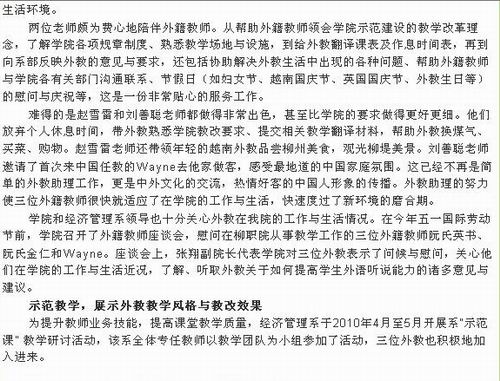 柳州教育网发布我院经济管理系引进外籍教师的信息 来源:柳州职业技术学院新闻网 作者:朱汝群 编审: 发布时间:2010-06-25 浏览次数: 次 【字体:小 大】 分享到: 2010年6月25日,柳州教育网发布我院经济管理系引进外籍教师的信息。(文/朱汝群) 发布的信息截图 关闭 打印正文