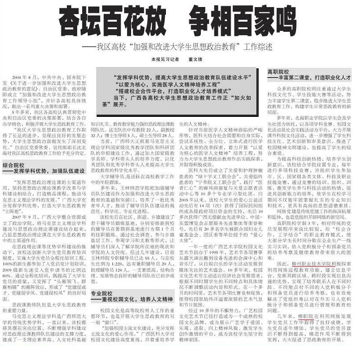 《广西日报》教育版报道我院积极探索网络远程教育工作的新闻