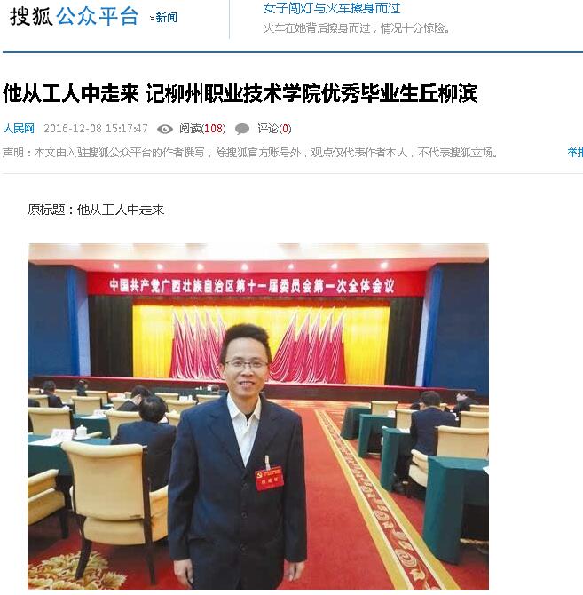 【搜狐新闻网】他从工人中走来--记柳州职业技术学院优秀毕业生丘柳滨
