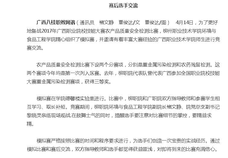【广西八桂职教网】柳职院与广职院开展农产品质量安全检测交流赛