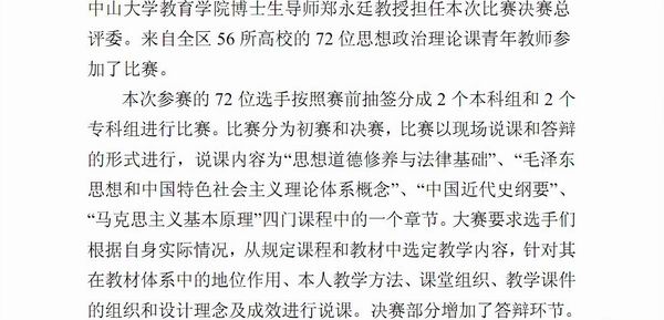 《广西教育工作简报》发布我院教师在全区第二届高校思想政治理论课青年教师教学基本功大赛中获一等奖的信息