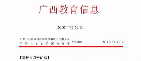 《广西教育信息》2010年第59期发布澳大利亚坎培门理工学院领导到我院访问的信息。(图/朱汝群)