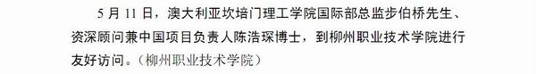 《广西教育信息》发布澳大利亚坎培门理工学院领导到我院访问的信息