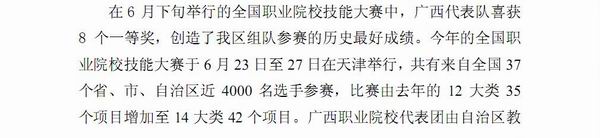 《广西教育信息》发布我院在全国职业院校技能大赛中获1个零部件3D测量与制造项目一等奖的信息