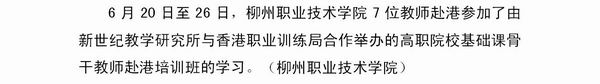 《广西教育信息》发布我院教师赴香港参加高职院?;】喂歉山淌ε嘌蛋嘌暗男畔?