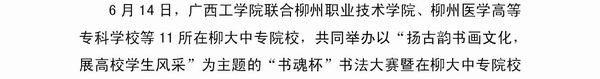 《广西教育信息》发布我院参与举办“书魂杯”书法大赛暨书画作品展的信息
