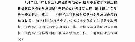 《广西教育信息》发布“柳工-柳职院工程机械售后服务专业培训班”在我院开班的信息