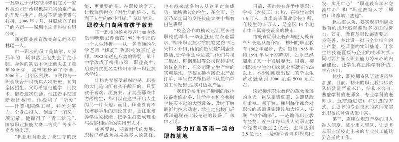 2010年10月11日,《柳州晚报》刊登我院党委书记朱伟才采访及优秀毕业生先进事迹。