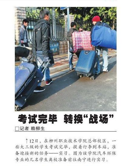 2011年1月14日,《柳州晚报》报道我院学生寒假赴企业实习的新闻。(图/蒋玉梅)