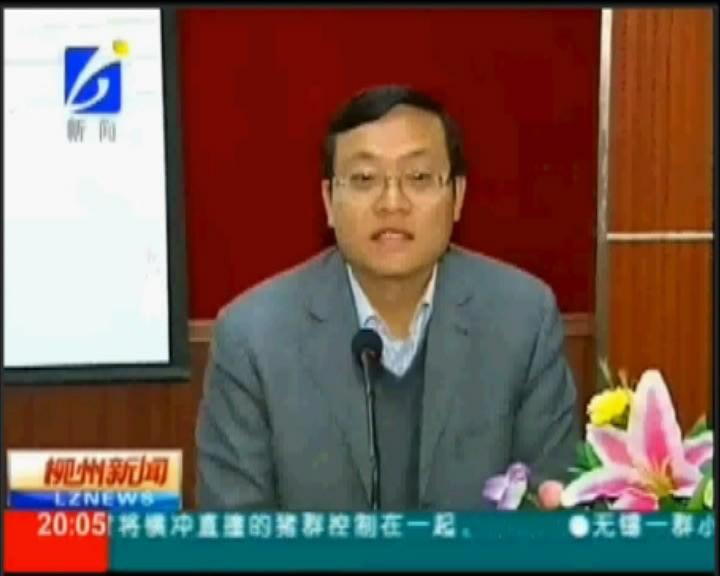 柳州电视台2011年3月26日晚《柳州新闻》栏目播出中共柳州市委副书记苏海棠来我院讲学的新闻。(图/朱敬民)