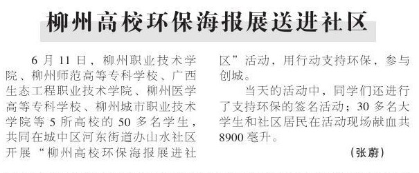 2011年6月13日,《柳州日报》报道我院学生参与创城活动的新闻。