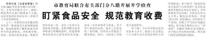 日报消息(记者姚颖盈)昨天是2011年秋季学期开学的第一天,市教育局联合卫生 、消防 、财政等有关部门组成8个小组,分别对各县区和部分中小学展开了开学常规检查。