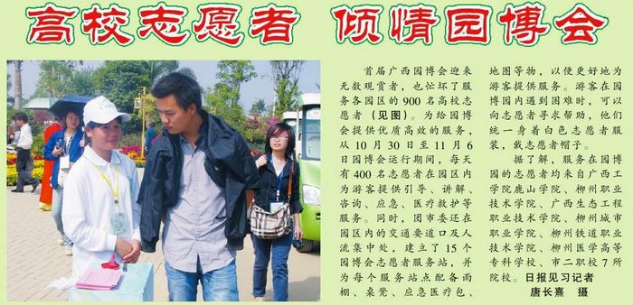 2011年11月5日,《柳州日报》报道我院志愿者倾情服务园博会的新闻。