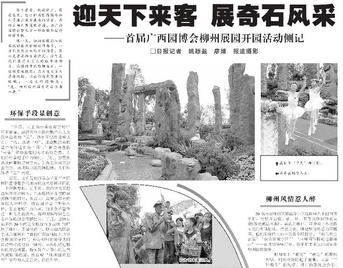 2011年11月7日,《柳州日报》报道我院艺术系学生的行为艺术为园博会柳州园增彩添色的新闻。