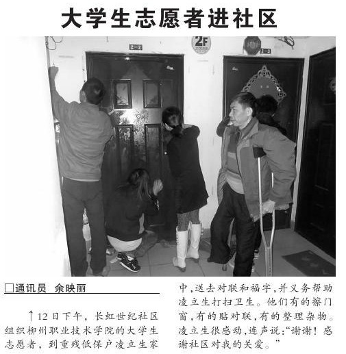 2012年1月16日,《柳州晚报》报道我院大学生志愿者进社区服务的新闻。(蒋玉梅)