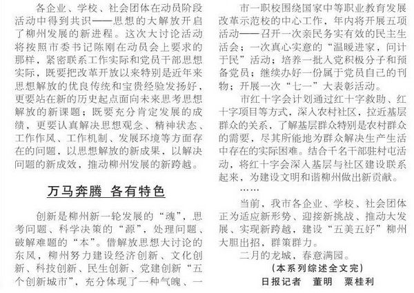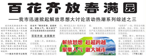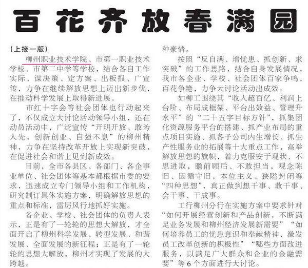 2012年2月29日,《柳州日报》报道柳州市掀起解放思想大讨论活动热潮,我院积极参与的新闻。(蒋玉梅)