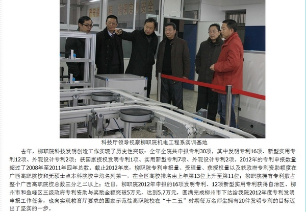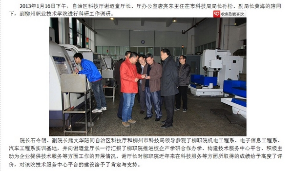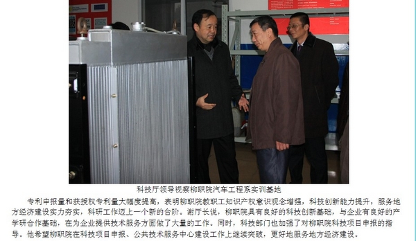 柳州教育局网站发布自治区科技厅领导到我学院调研的信息 来源:柳州职业技术学院新闻网 作者:崔智慧 编审: 发布时间:2013-02-27 浏览次数: 次 【字体:小 大】 分享到: 1月25日,柳州教育局网站发布自治区科技厅领导到我学院调研的信息。(崔智慧) 信息截图 关闭 打印正文