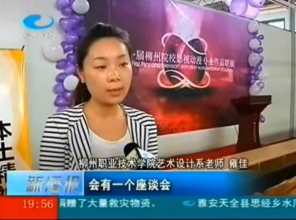 2013年4月26日,柳州电视台《新播报》栏目播出我院举办首届柳州市院校影视动漫作品联展活动的新闻。(截图/朱敬民)