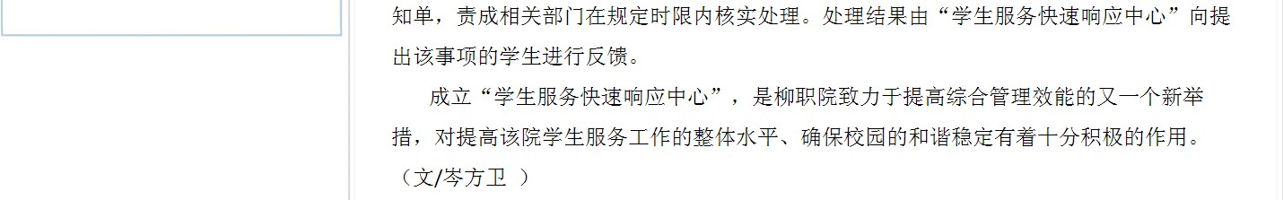 中国高职高专网发布我院成立“学生服务快速响应中心”的信息 来源:柳州职业技术学院新闻网 作者:崔智慧 编审: 发布时间:2013-05-06 浏览次数: 次 【字体:小 大】 分享到: 2013年5月3日,中国高职高专网发布我院成立“学生服务快速响应中心”的信息。(崔智慧) 信息截图 关闭 打印正文