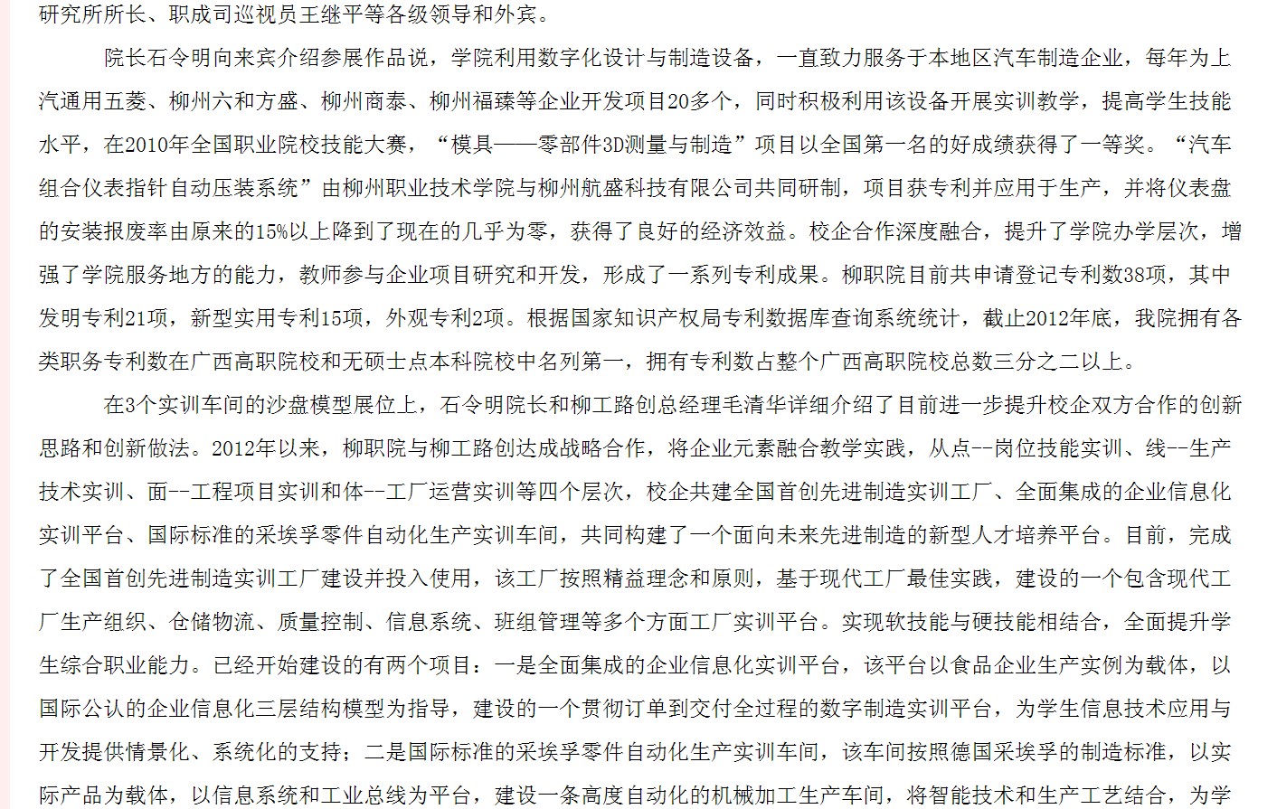 广西教育厅网站发布我院参加2013中国-东盟职业教育联展暨论坛获广泛好评的信息 来源:柳州职业技术学院新闻网 作者:崔智慧 编审: 发布时间:2013-09-09 浏览次数: 次 【字体:小 大】 分享到: 2013年9月9日,广西教育厅网站发布我院参加2013中国-东盟职业教育联展暨论坛获广泛好评的信息。(崔智慧) 信息截图 关闭 打印正文