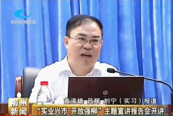 2014年4月16日,柳州电视台《柳州新闻》栏目播出我院党委书记朱伟才在柳州市“实业兴市、开放强柳”主题宣讲报告会上作专题宣讲的新闻。(截图/朱敬民)
