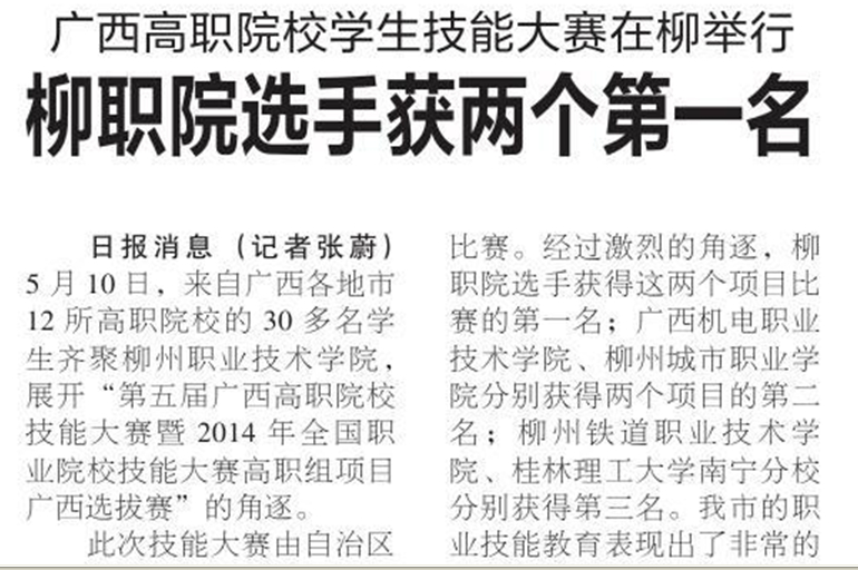 柳州日报刊发我院选手在全区技能大赛中获两个第一名的消息 来源:柳州职业技术学院新闻网 作者:石玉丹 编审: 发布时间:2014-05-13 浏览次数: 次 【字体:小 大】 分享到: 2014年5月12日,柳州日报在第4版、 以“柳职院选手获两个第一名”为题,刊发我院举办全区技能大赛的消息。(截图:石玉丹) 关闭 打印正文