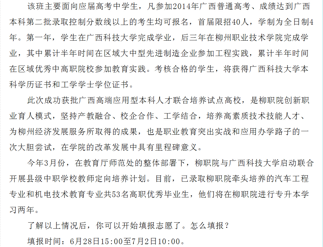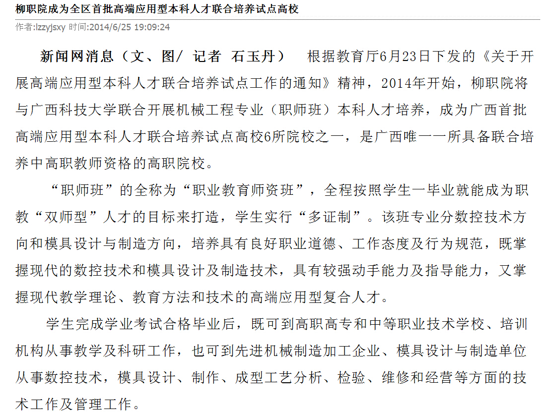 柳州教育局网站发布我院成为全区首批高端应用型本科人才联合培养试点高校的信息 来源:柳州职业技术学院新闻网 作者:崔智慧 编审: 发布时间:2014-07-01 浏览次数: 次 【字体:小 大】 分享到: 2014年7月1日,柳州教育局网站发布我院成为全区首批高端应用型本科人才联合培养试点高校的信息。(崔智慧) 信息截图 关闭 打印正文