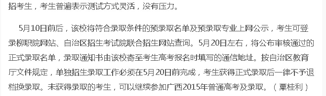 新华网发布我院举行单招考试新闻 来源:柳州职业技术学院新闻网 作者:崔智慧 编审: 发布时间:2015-04-29 浏览次数: 次 【字体:小 大】 分享到: 4月28日,新华网发布我院举行单招考试新闻。(截图 崔智慧) 新闻截图 关闭 打印正文