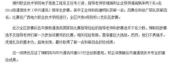 2016年4月15日,八桂职教网刊发我校选手首次出征全区技能大赛4G全网建设技术赛项就闯入国赛的新闻。详情点击: http://www.ep12.com/a/zhongdasaishi/jinendasai1/saishixinwen/2016/0415/40369.html(截图:石玉丹)